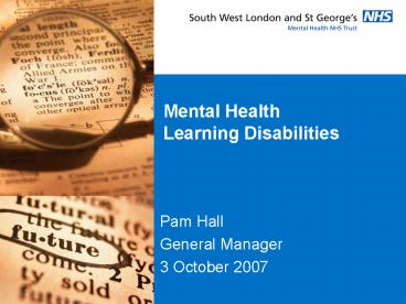 Mental Health Learning Disabilities PowerPoint PPT Presentation