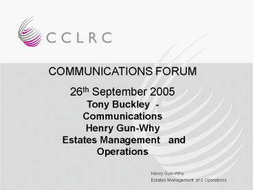 3COMMUNICATIONS FORUM Daresbury Laboratory -