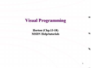 1Visual ProgrammingHorton (Chp.13-18)MSDN