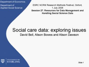 1ESRC NCRM Research Methods Festival, Oxford, 1