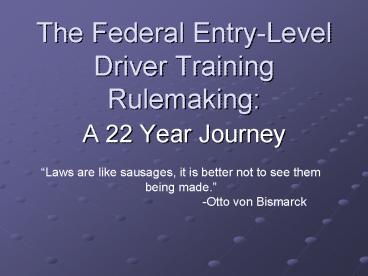 Title: The Federal EntryLevel Driver Training Rulemaking: