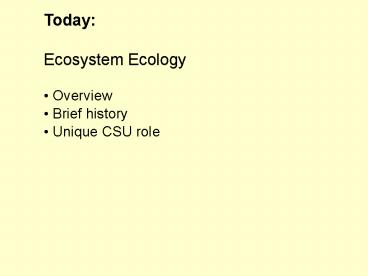 - Ecosystem Ecology