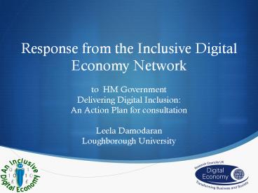 Response from the Inclusive Digital Economy Network to HM Government Delivering Digital Inclusion: A PowerPoint PPT Presentation