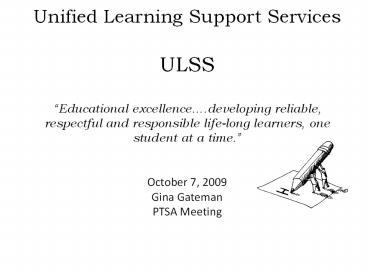 Unified Learning Support Services ULSS PowerPoint PPT Presentation
