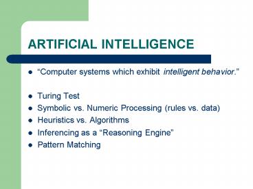 ARTIFICIAL INTELLIGENCE PowerPoint PPT Presentation