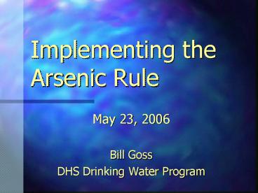Title: Implementing the Arsenic Rule