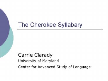 <Notice: Removed> The Cherokee Syllabary PowerPoint PPT Presentation
