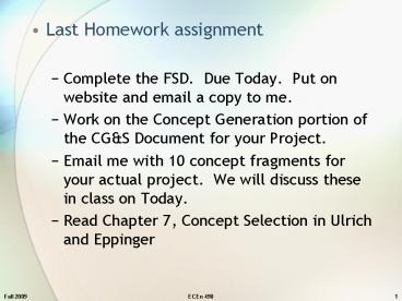 on Today. - Read Chapter 7, Concept Selection in Ulrich and
