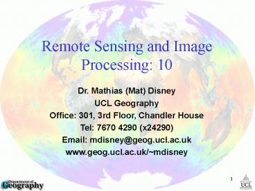 <Notice: Removed> Remote Sensing and Image Processing: 10 PowerPoint PPT Presentation