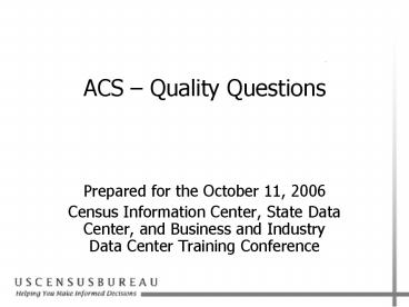 ACS Quality Questions PowerPoint PPT Presentation