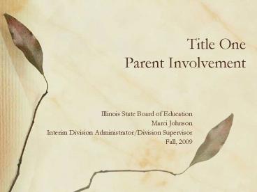 Title: Title One Parent Involvement