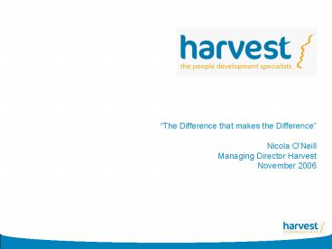 performance skills within the organisation. - At the heart of the Harvest story is our closely