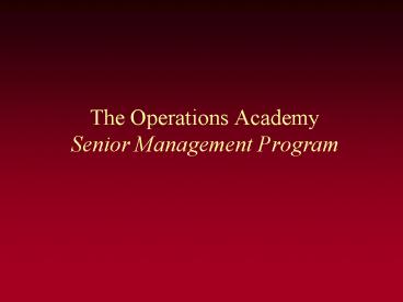 The Operations Academy Senior Management Program PowerPoint PPT Presentation