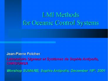 <Notice: Removed> LMI Methods for Oceanic Control Systems PowerPoint PPT Presentation