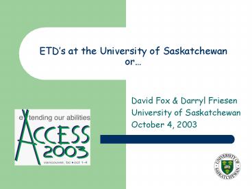 ETDs at the University of Saskatchewan or PowerPoint PPT Presentation