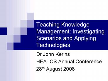 <Notice: Removed> Teaching Knowledge Management: Investigating Scenarios and Applying Technologies PowerPoint PPT Presentation