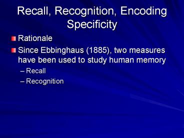 Recall, Recognition, Encoding Specificity PowerPoint PPT Presentation