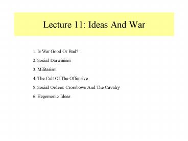 1. Is War Good Or Bad? 2. Social Darwinism 3.