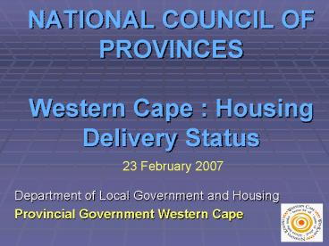 NATIONAL COUNCIL OF PROVINCES Western Cape : Housing Delivery Status PowerPoint PPT Presentation