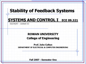 all roots are in LHP - ?(s) (s j)(s j) s 2 1 missing