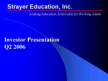 large, underserved, and highly attractive market - Strayer is a high-quality education company