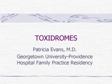 TOXIDROMES PowerPoint PPT Presentation