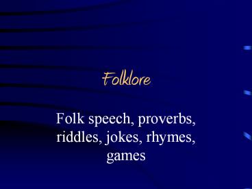 • Folk speech, proverbs, riddles, jokes, rhymes,