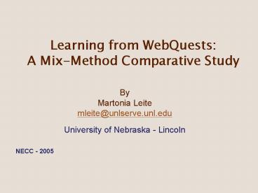<Notice: Removed> Learning from WebQuests: A MixMethod Comparative Study PowerPoint PPT Presentation
