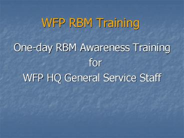 Title: WFP RBM Training