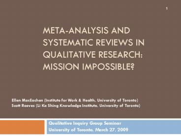 Title: Metaanalysis and systematic reviewsin qualitative research: Mission impossible