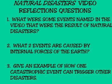 NATURAL DISASTERS VIDEO REFLECTIONS QUESTIONS PowerPoint PPT Presentation