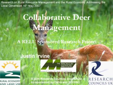 organisations (such as deer management groups) - We aim to investigate the relative importance of
