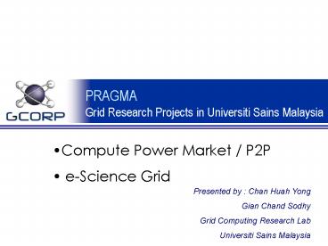 Title: PRAGMA Grid Research Projects in Universiti Sains Malaysia
