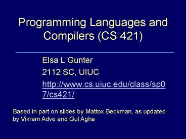<Notice: Removed> Programming Languages and Compilers CS 421 PowerPoint PPT Presentation