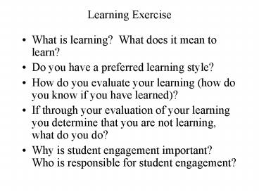 Learning Exercise PowerPoint PPT Presentation
