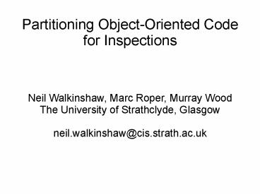Partitioning ObjectOriented Code for Inspections PowerPoint PPT Presentation