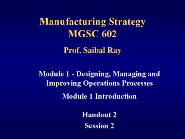 Title: Manufacturing Strategy MGSC 602 Prof' Saibal Ray