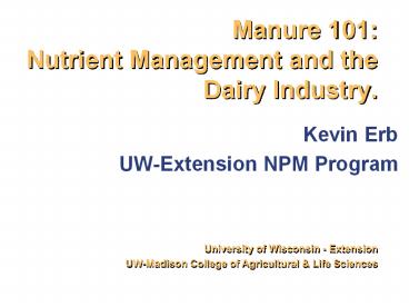 <Notice: Removed> Manure 101: Nutrient Management and the Dairy Industry. PowerPoint PPT Presentation