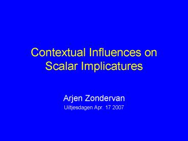 Contextual Influences on Scalar Implicatures PowerPoint PPT Presentation