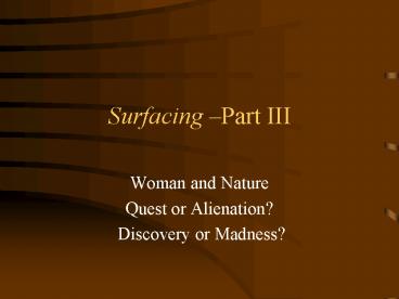 • Surfacing 3 (Part IIthe climax) -- Quest or