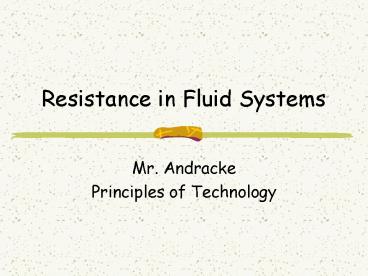 Resistance in Fluid Systems PowerPoint PPT Presentation
