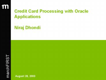 Title: Credit Card Processing with Oracle Applications Niraj Dhondi