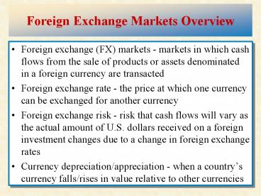 denominated in a foreign currency are transacted - Foreign exchange rate - the price at which one