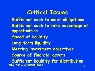 Critical Issues PowerPoint PPT Presentation