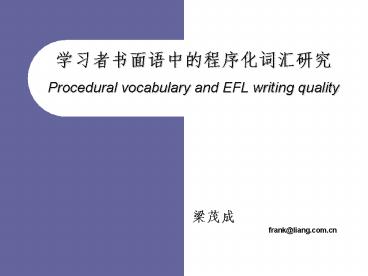 Procedural vocabulary and EFL writing quality PowerPoint PPT Presentation