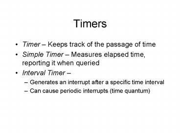 - Timer Keeps track of the passage of time
