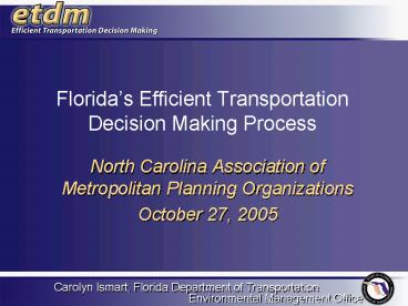 associated costs and acceptability - Projects enter the FDOT Work Program and MPO TIP