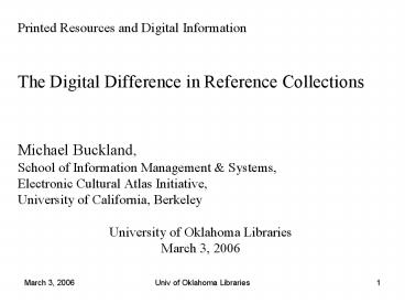 University of Oklahoma Libraries March 3, 2006
