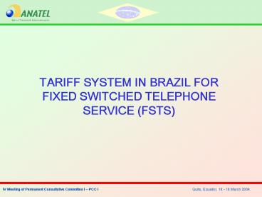 1TARIFF SYSTEM IN BRAZIL FOR FIXED SWITCHED