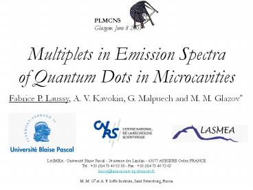 Multiplets in Emission Spectra of Quantum Dots in Microcavities PowerPoint PPT Presentation
